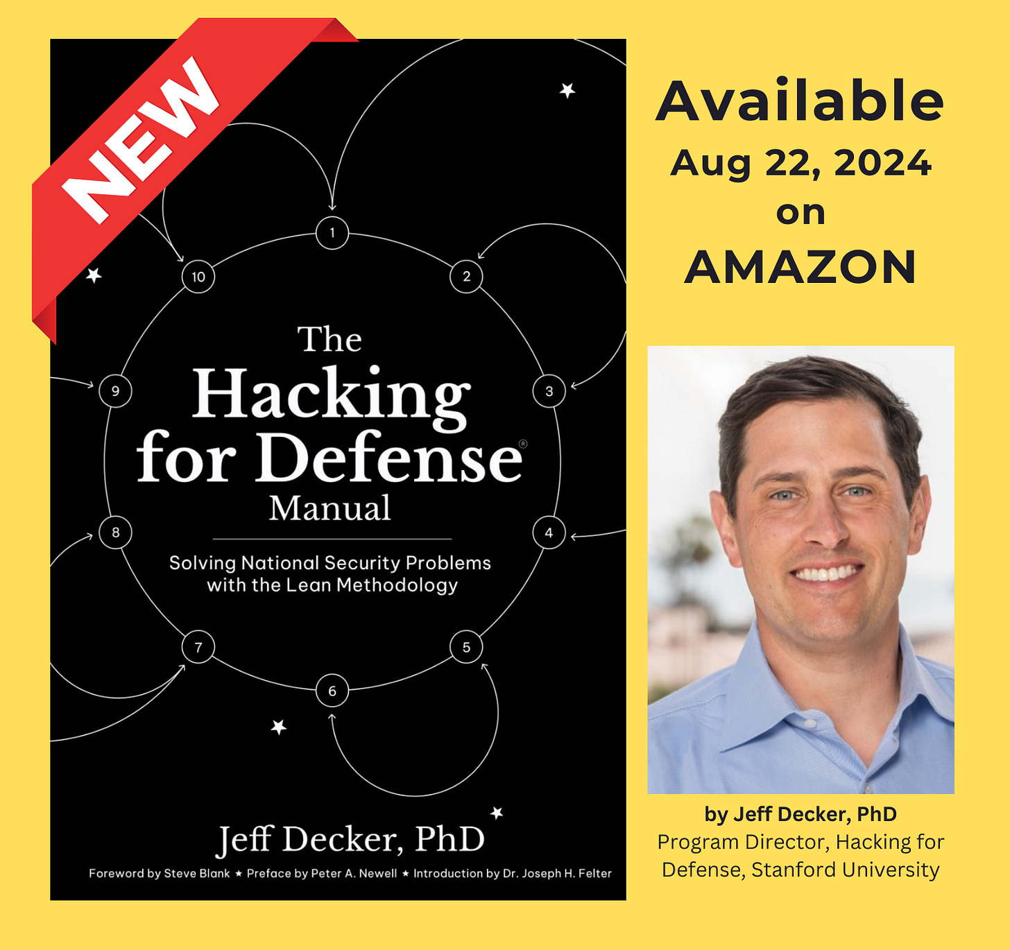 Jeff Decker, PhD, program director of Hacking for Defense at Stanford University, has written the first official textbook for the H4D course